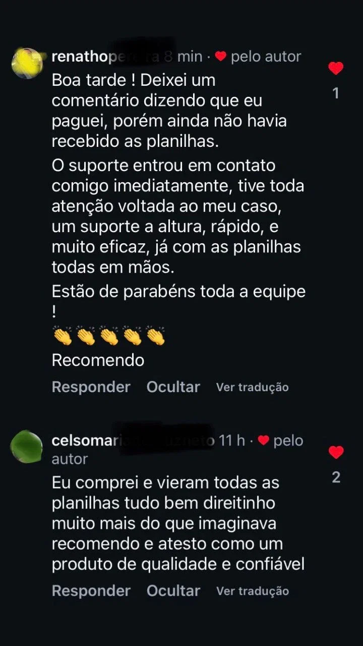 ✔️ Editáveis no Excel e Google Planilhas